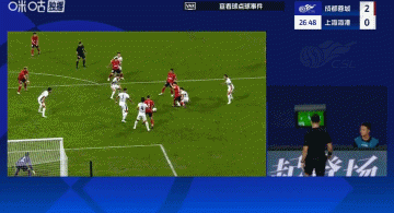 第62分钟,成都蓉城左路传中,前点一漏,中路李扬小禁区转身破门!但因越位被吹无效↓